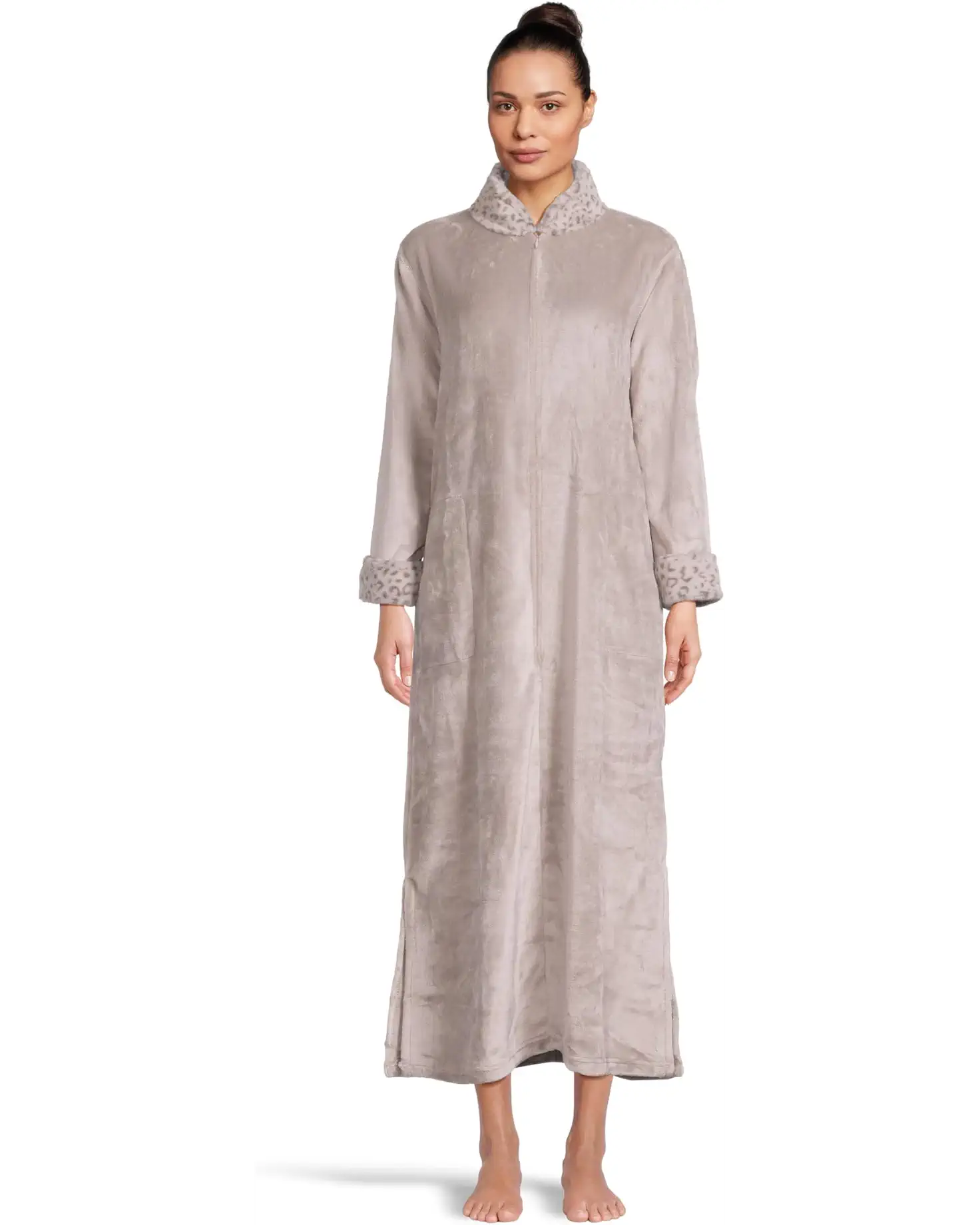 - Wrap yourself in cozy elegance wearing the N by Natori™ Plush Lynx Zip Robe. This soft and warm sleepwear features V-neckline, long sleeves, front zippered closure, and faux fur detailing on neckline and sleeve cuffs.