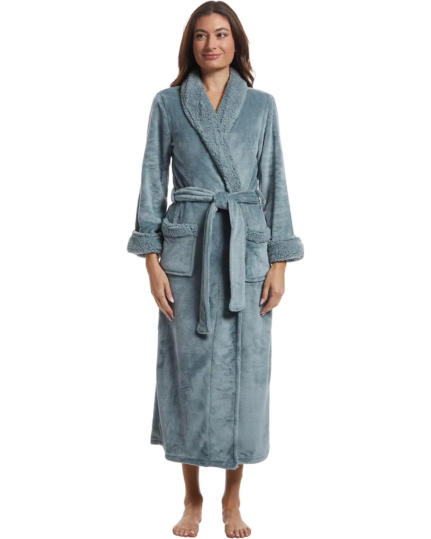 • Soft fine knit polyester with contrast sherpa trim at the inside shawl collar.