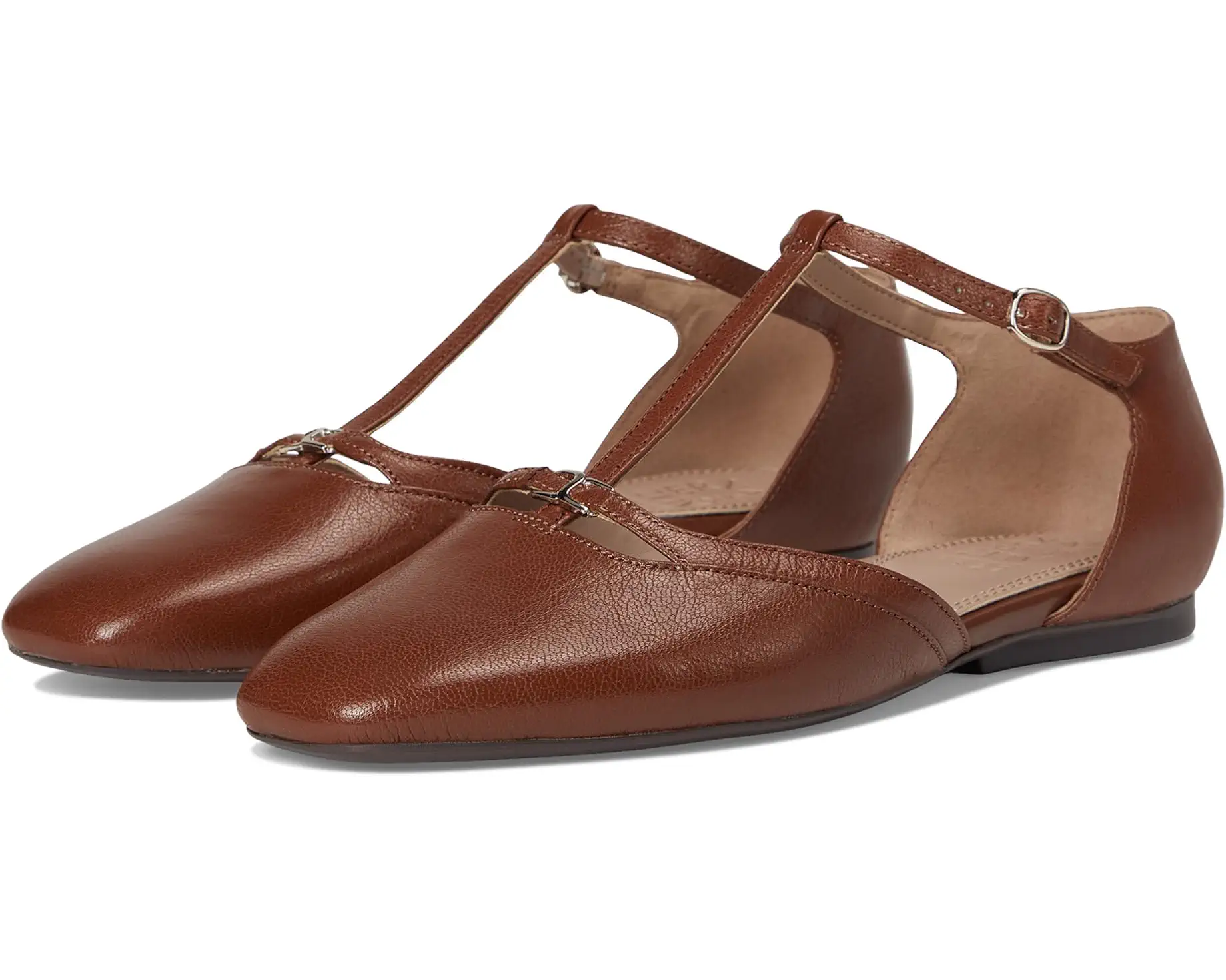 • The Naturalizer® Caresse shoes are classic Mary Jane shoes with a T-strap styling twist and low block heels. Their leather upper has a stylish square toe shape and an ankle strap with an adjustable buckle closure. The lining, insole, and toe box are crafted from partially recycled materials. Their Contour+ Comfort technology offers a premium fit and an all-day comfort experience. These leather shoes work for different occasions.