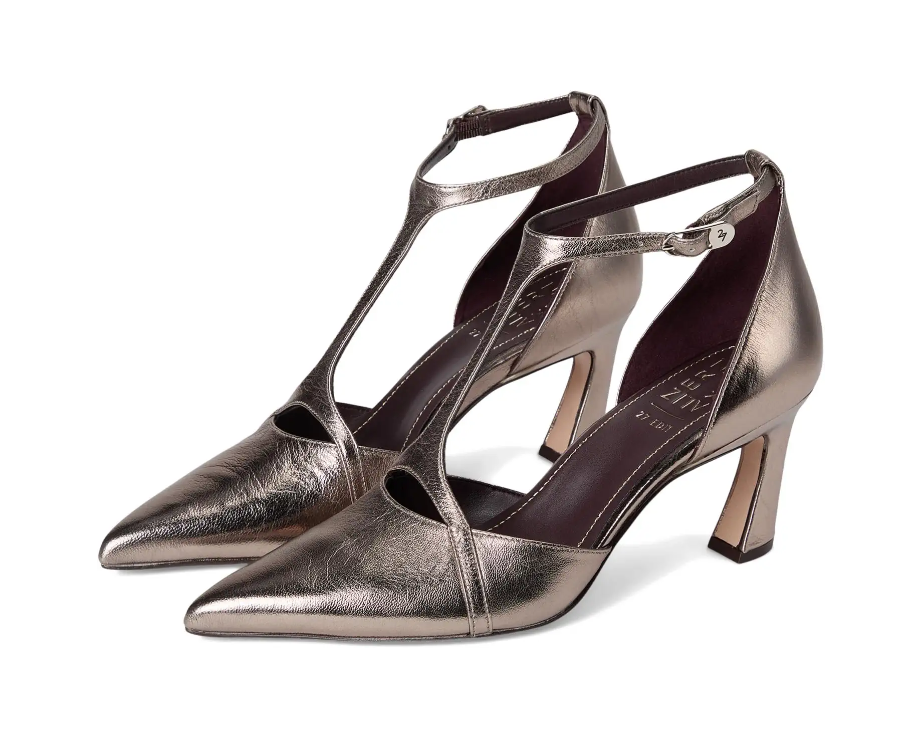 - The Naturalizer® Ezlyn heels are a great choice to make your fashion statement. Their partially bio-based footbed is crafted with soft and lightweight cushioning, built-in arch support, and a molded heel cup. The premium leather upper has a pointed toe design and an adjustable ankle strap. These heeled sandals feature signature Contour+ Comfort technology for a premium fit and true, all-day comfort experience. They are made of a man-made insole and leather lining. The REZORB responsive cushioning offers shock absorption + impact protection for sneaker-level comfort in heels.