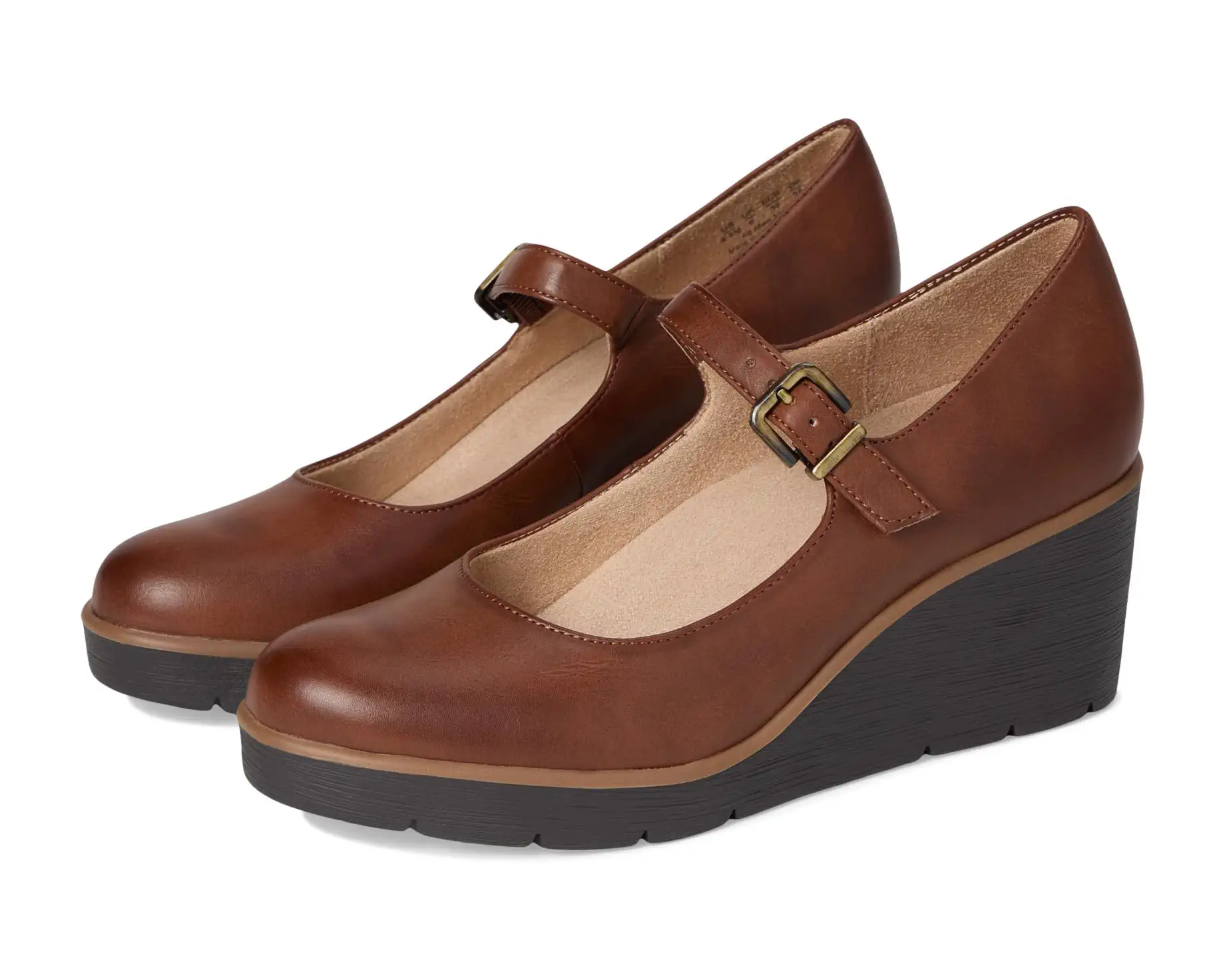 • Be stylish in every step by wearing the Naturalizer® Adore! Elevate your look with these wedge shoes featuring a chic Mary-Jane strap. The round toe design adds casual charm, while the adjustable buckle ensures easy on/off. Enjoy everyday comfort with arch support with memory foam and a freshness-preserving sock lining. These Comfy + casual wedges for women are designed with a synthetic upper and soft foam lining, making them comfortable to wear for long hours.