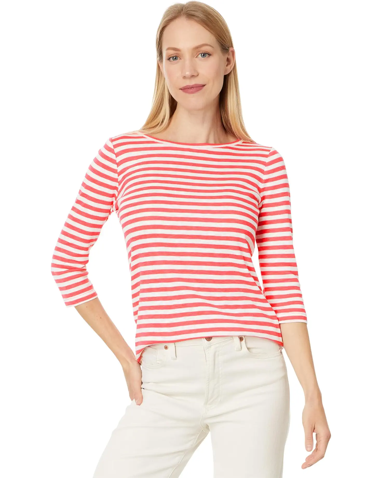 3/4 Sleeve Stripe Boat Tee