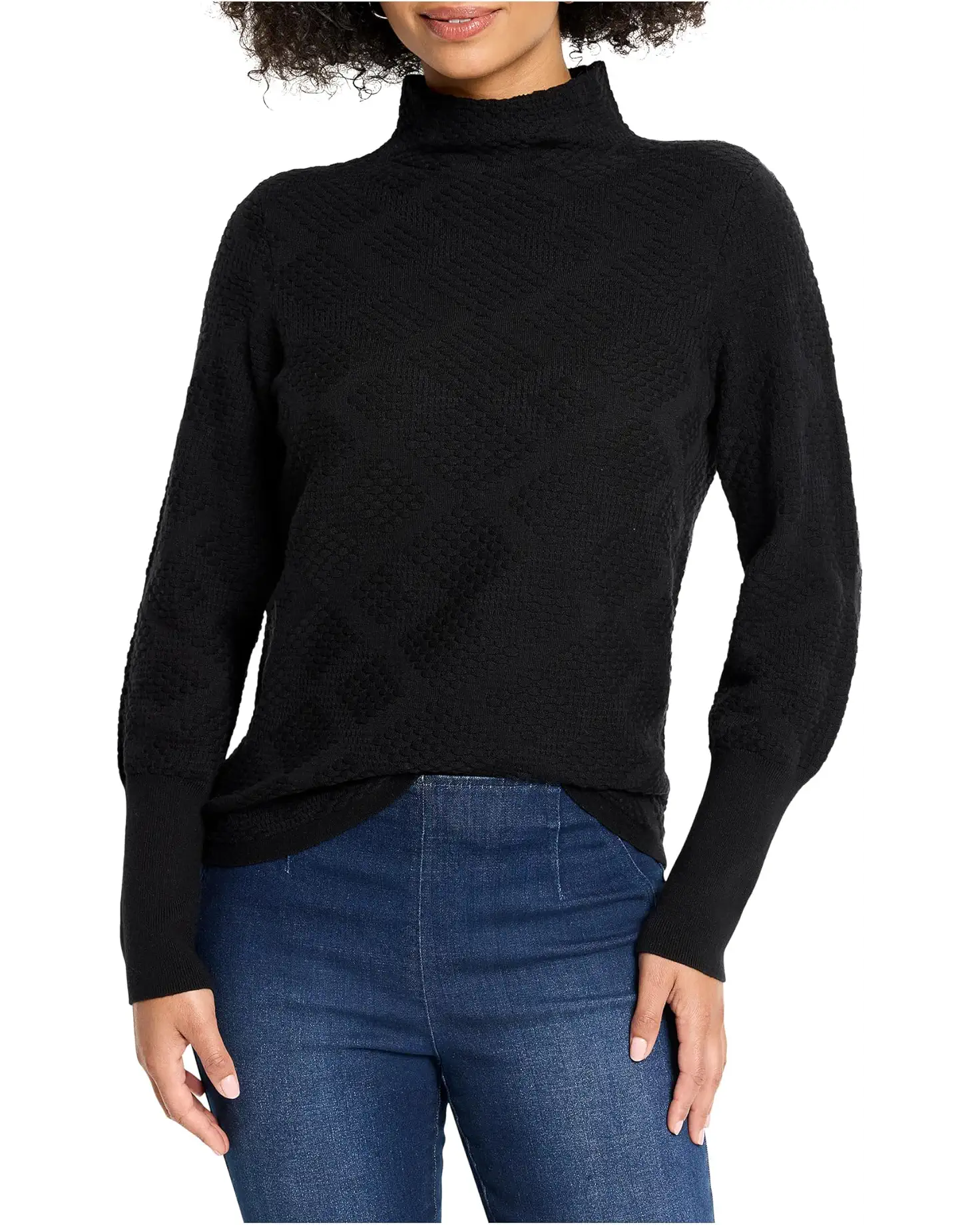 • Textured diamonds are a girls best friend. Featuring intricate stitched-in diamond patterning and a comfy funnel neck, this cozy yet drapey pullover is a must have for fall and beyond. Pair her up with jeans, skirts, work pants, for an effortless, timeless look.