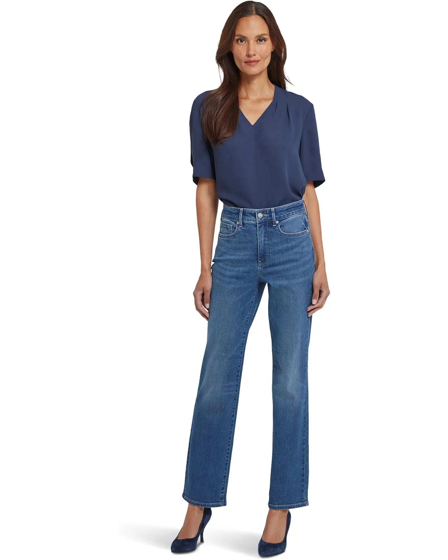 • The curve-sculpting, figure-elongating construction of NYDJ® High Rise Marilyn pairs well with everything, in a versatile straight-leg silhouette. This Marilyn Straight style features an even higher rise and a slightly shorter inseam than the typical Marilyn Straight.