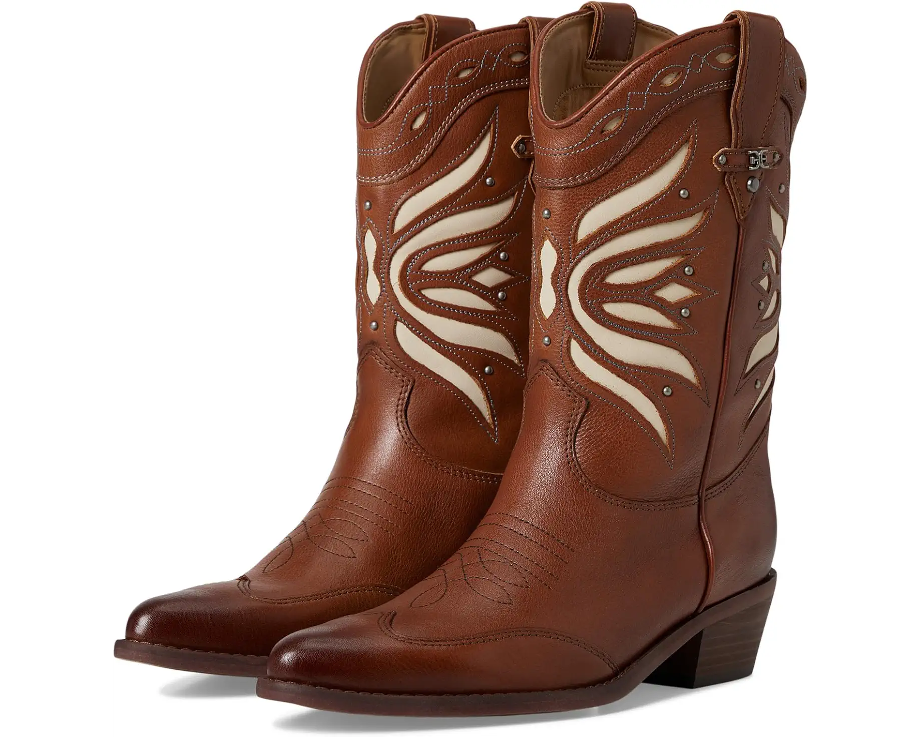 - The Sam Edelman® Rylin boots are calf-high boots featuring contrasting cut-out details and embroidery. These heeled boots are made of a faux leather insole and polyurethane lining. Their leather upper is styled with side pull handles for easy wear. Make your style statement with these leather boots.