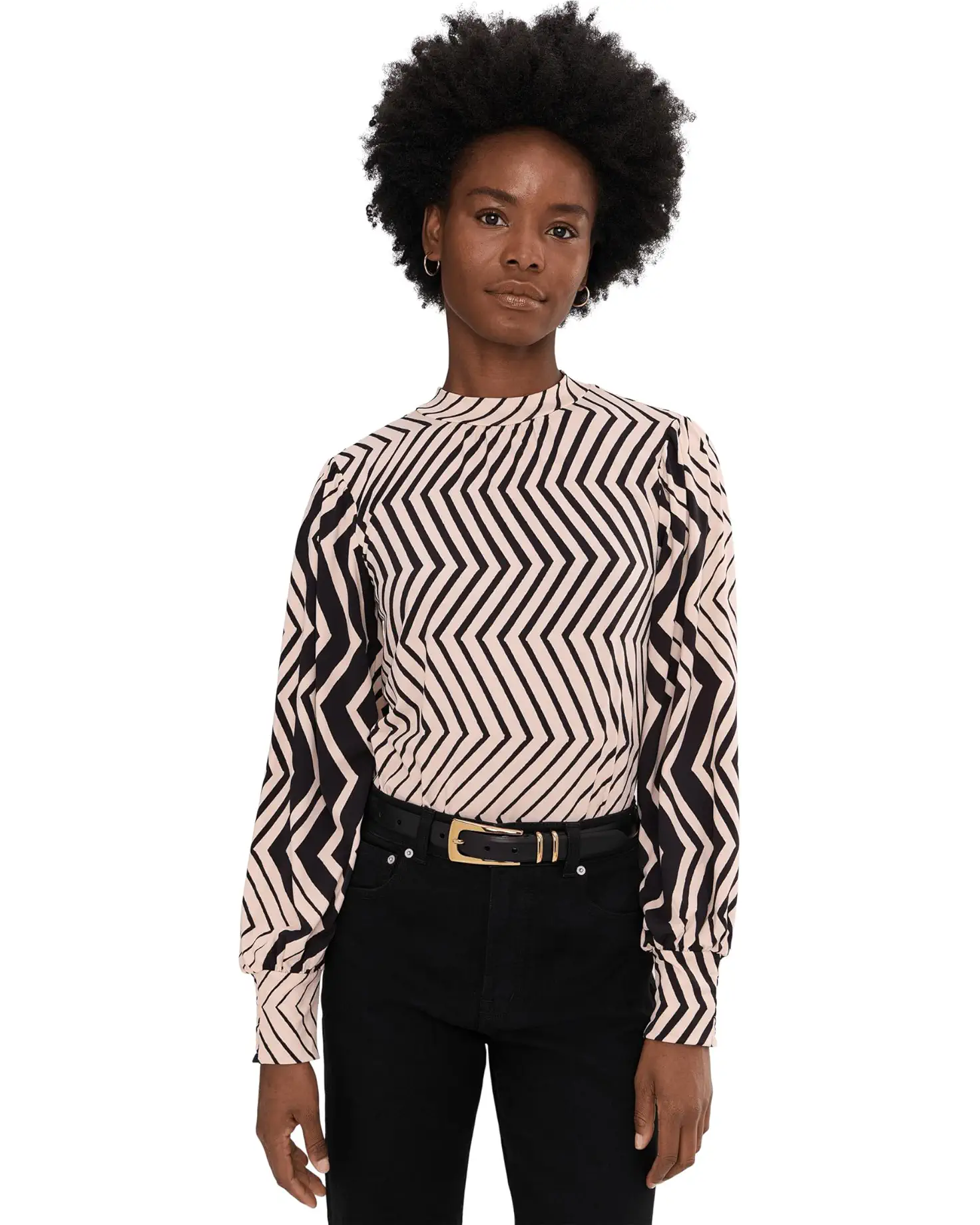 • Make your style statement wearing the Sanctuary™ Hi Crew Blouse. Featuring an allover geometric pattern, this chic blouse has long sleeves, a high crew neckline, and a straight hem. With the blend of polyester and a hint of spandex, it offers soft sheen and fluid drape that feels both luxurious and accessible. The hidden zippered back closure ensures a clean, streamlined finish. Pair this printed blouse with high-rise trousers for a polished look, or with denim jeans for weekend brunches.
