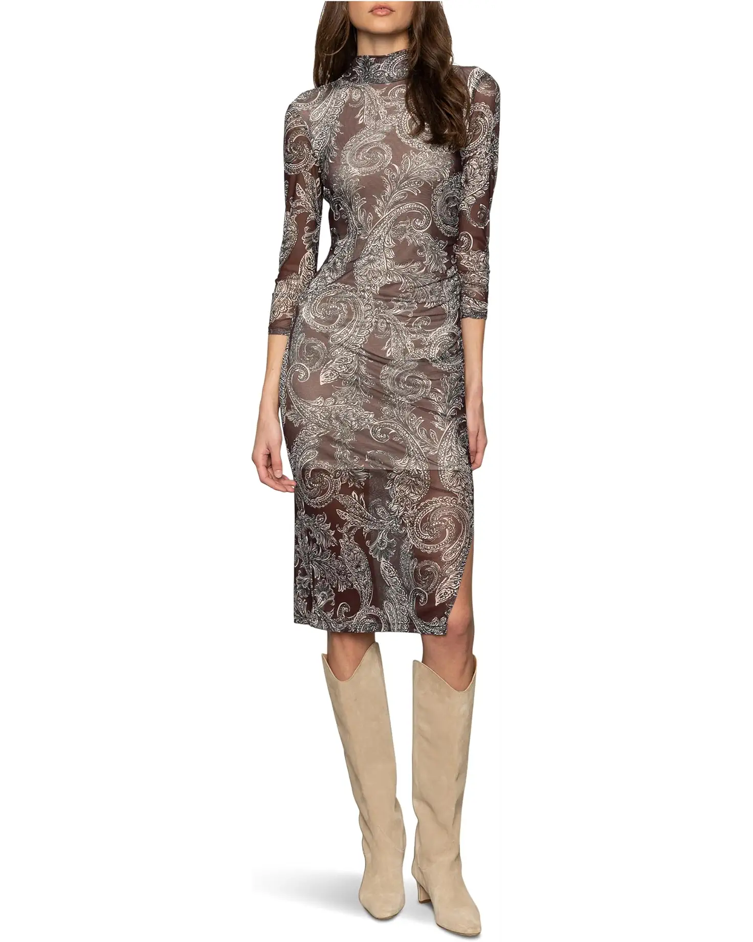 • The Sanctuary™ Night Out Mock Dress is the ultimate statement piece for evenings that call for equal parts edge and elegance. Designed with a chic mock neck and long sleeves, it offers a sleek, modern silhouette that's both timeless and on-trend. The mesh midi construction with a lined bodice strikes the perfect balance between allure and comfort, ensuring coverage where you need it while still exuding subtle drama. Falling at a versatile knee length, this dress is elevated with a side slit that adds just the right touch of movement and flirtation.