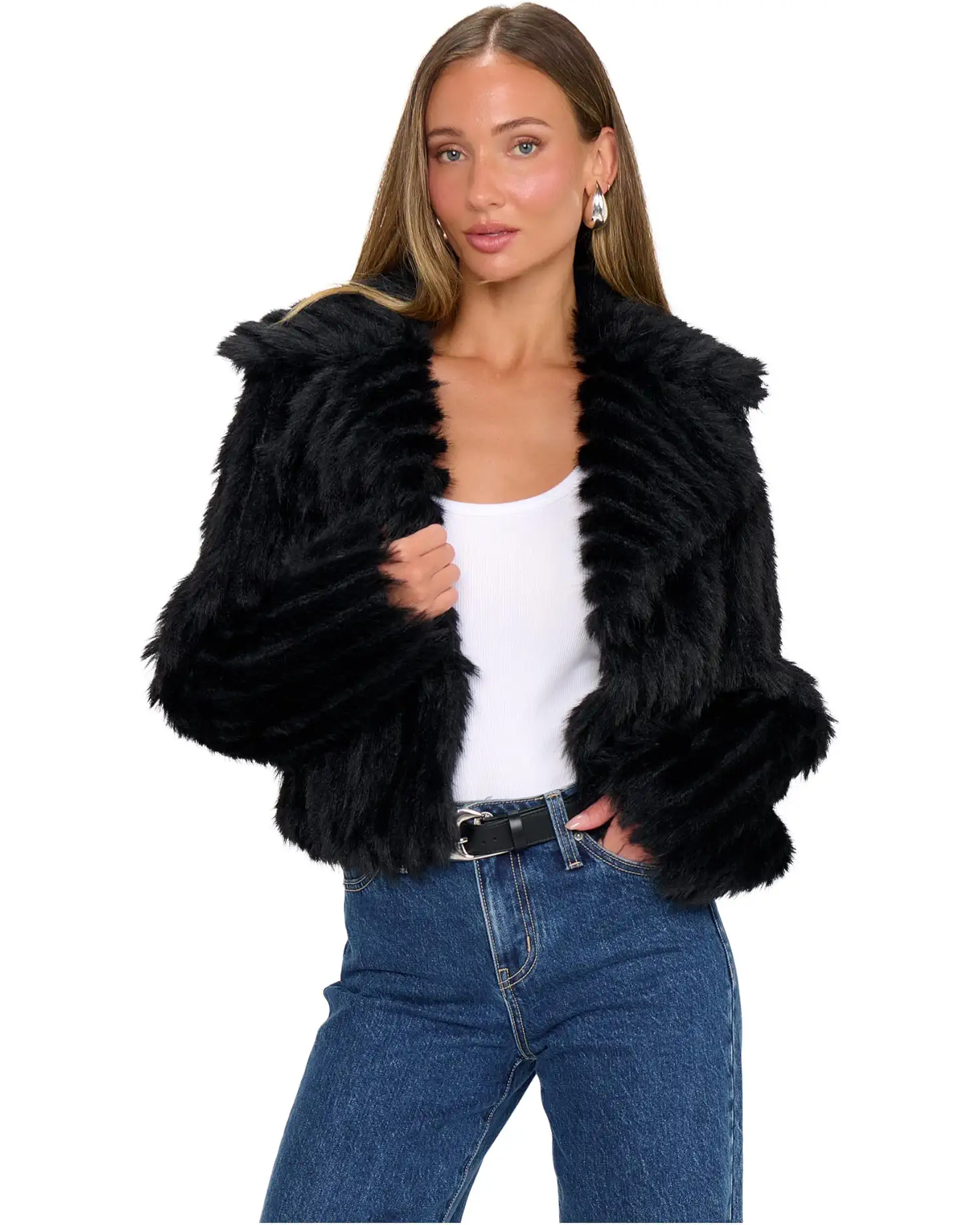 - Wrap yourself in luxe with the Show Me Your Mumu™ Salt Lake City Cropped Jacket! Made from super soft, fluffy faux fur, this chic piece can be draped over your shoulders or fastened at the front with a hook-and-eye closure for extra warmth and style!