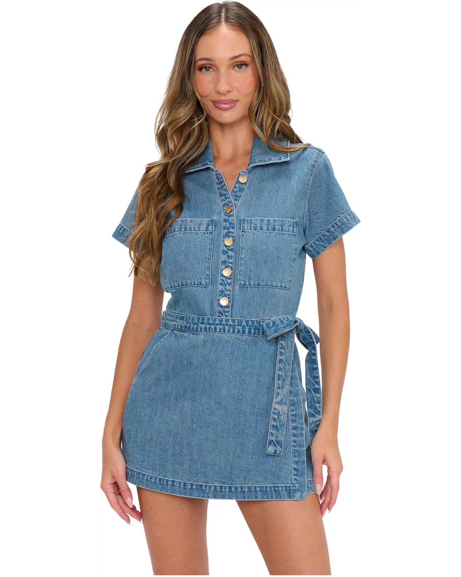 - The Show Me Your Mumu™ Stateside Romper looks like a two for one! With a short sleeved button-down top and a cute wrap skort bottom, you can wear this one casually or dress her up.
