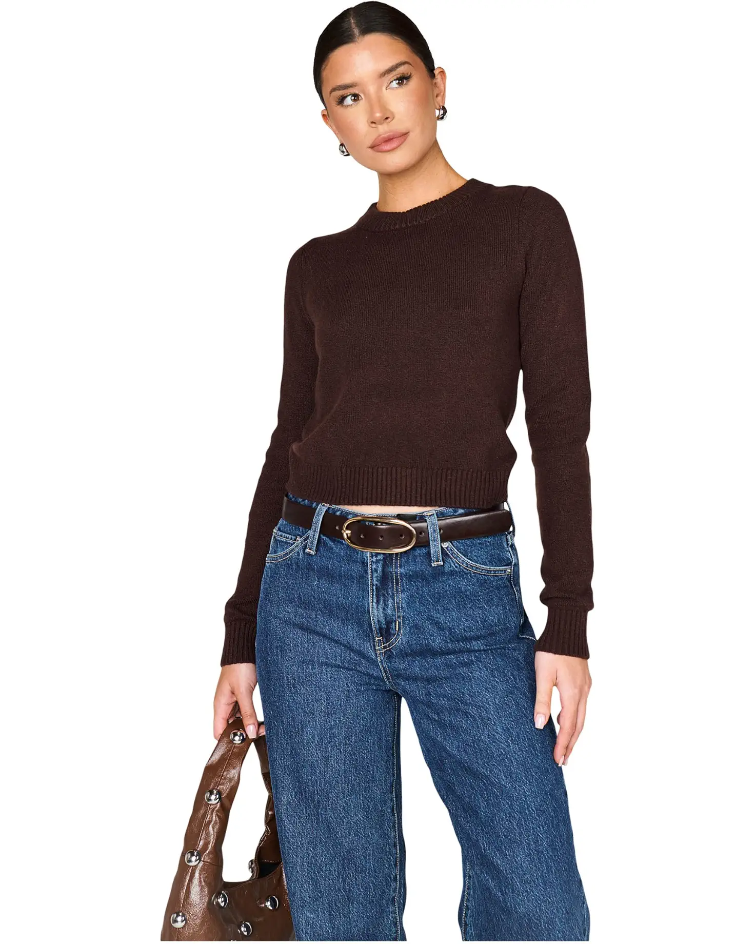 - Exude graceful vibes wearing the Show Me Your Mumu™ Thuck In Sweater. This classic crew neck sweater comes in rich chocolate brown hue with ribbed knit texture. Long sleeves with ribbed cuffs and ribbed hem create a fitted silhouette perfect for tucking. This pull-on style sweater is a versatile wardrobe staple that pairs effortlessly with jeans, skirts, or trousers.