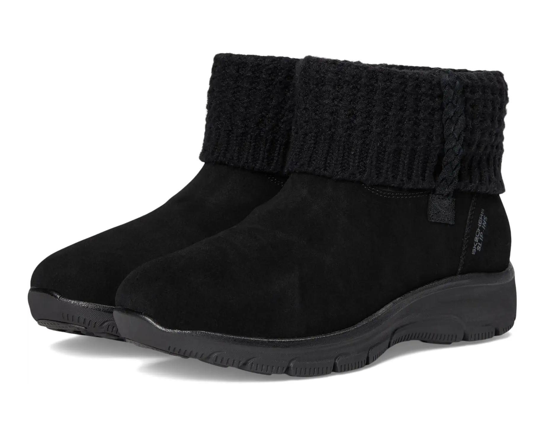 • Explore the outdoors in effortless cozy comfort with the SKECHERS® Easy Going - Cozy Lovin Hands Free Slip-ins. Designed with the exclusive Heel Pillow™, this suede slip-on boot features a 3M® Scotchgard® treated suede upper with a sweater knit fold-over collar and a cushioned Skechers Air-Cooled Memory Foam® insole.