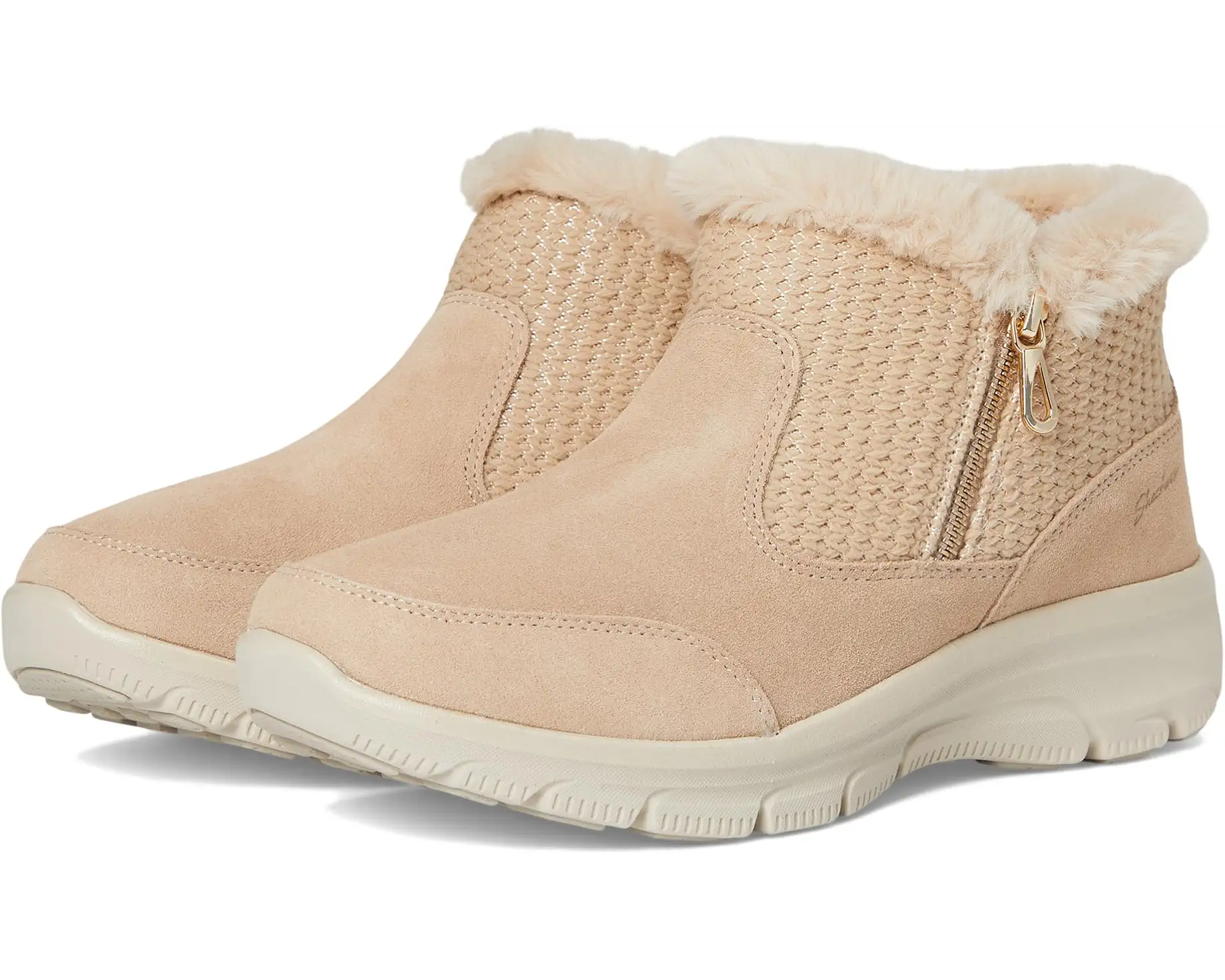 • Style that feels like a hug, SKECHERS® Easy Going - Gentle Fall. Designed to keep you warm and on-trend, this ankle-high beauty features a soft suede and sweater knit upper accented with a plush faux-fur trim that screams cozy season goals. The zippered side closure makes slipping in and out a breeze, while the moc toe and wedge heel add just the right touch of laid-back sophistication. Inside, the SKECHERS Air-Cooled Memory Foam® cushioned insole hugs your feet in unmatched comfort, and the durable rubber outsole ensures grip with every step.