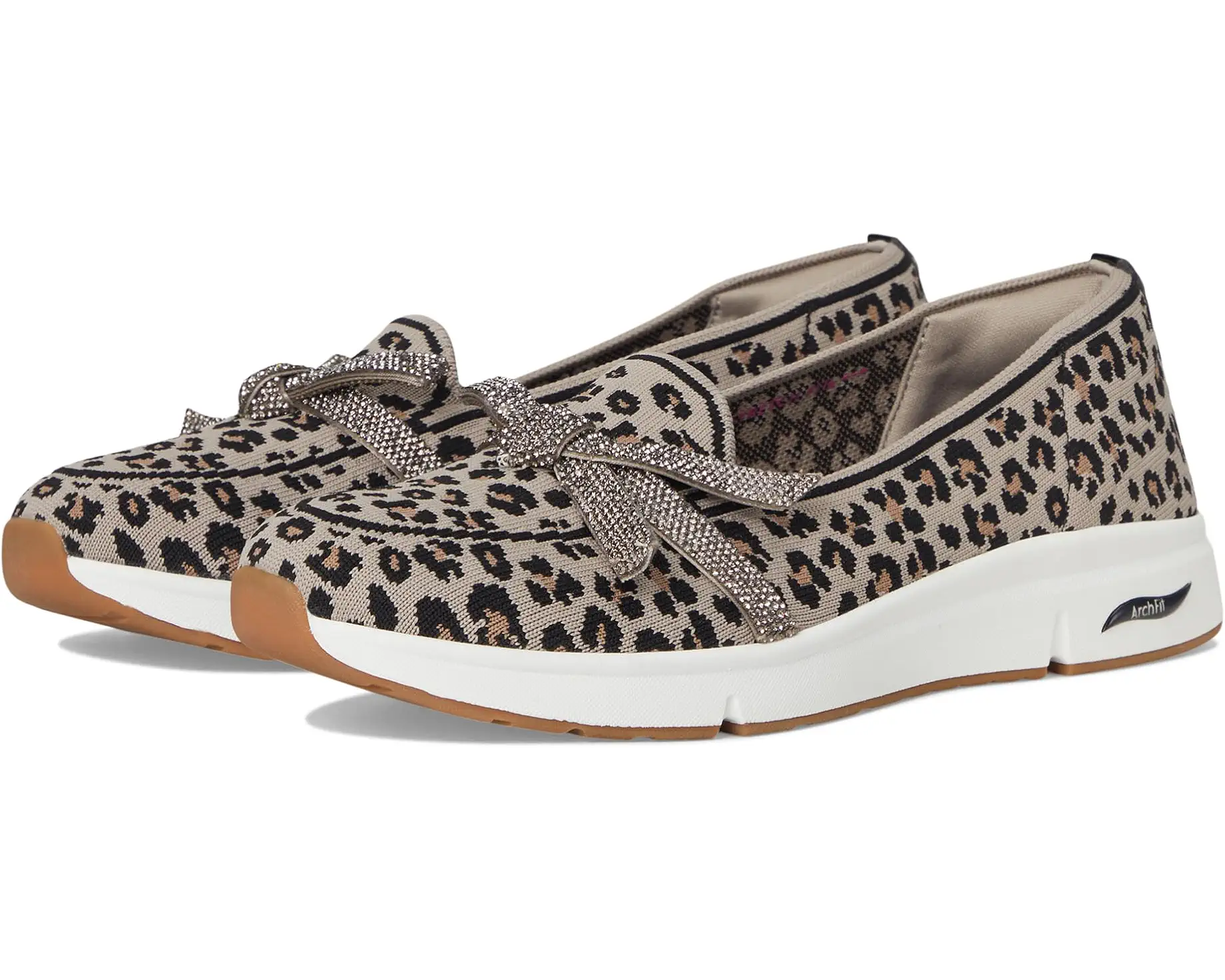- The SKECHERS® Martha Stewart Arch Fit - Living is where fashion-forward flair meets all-day support, designed to elevate your lifestyle with effortless ease. Celebrated lifestyle expert Martha Stewart brings her signature touch to Skechers in this spirited collaboration, offering a perfect balance of style and substance. Featuring a breathable mesh Stretch Fit leopard-print upper, this vegan loafer slips on with ease while making a bold statement. A rhinestone-embellished bow adds a dazzling finish, turning heads with every step. Inside, the removable Arch Fit insole, developed with podiatrist-certified arch support, provides lasting comfort and stability you can count on. The lightweight synthetic rubber outsole and durable construction keep you moving with ease, while the unlined design offers flexibility and breathability.