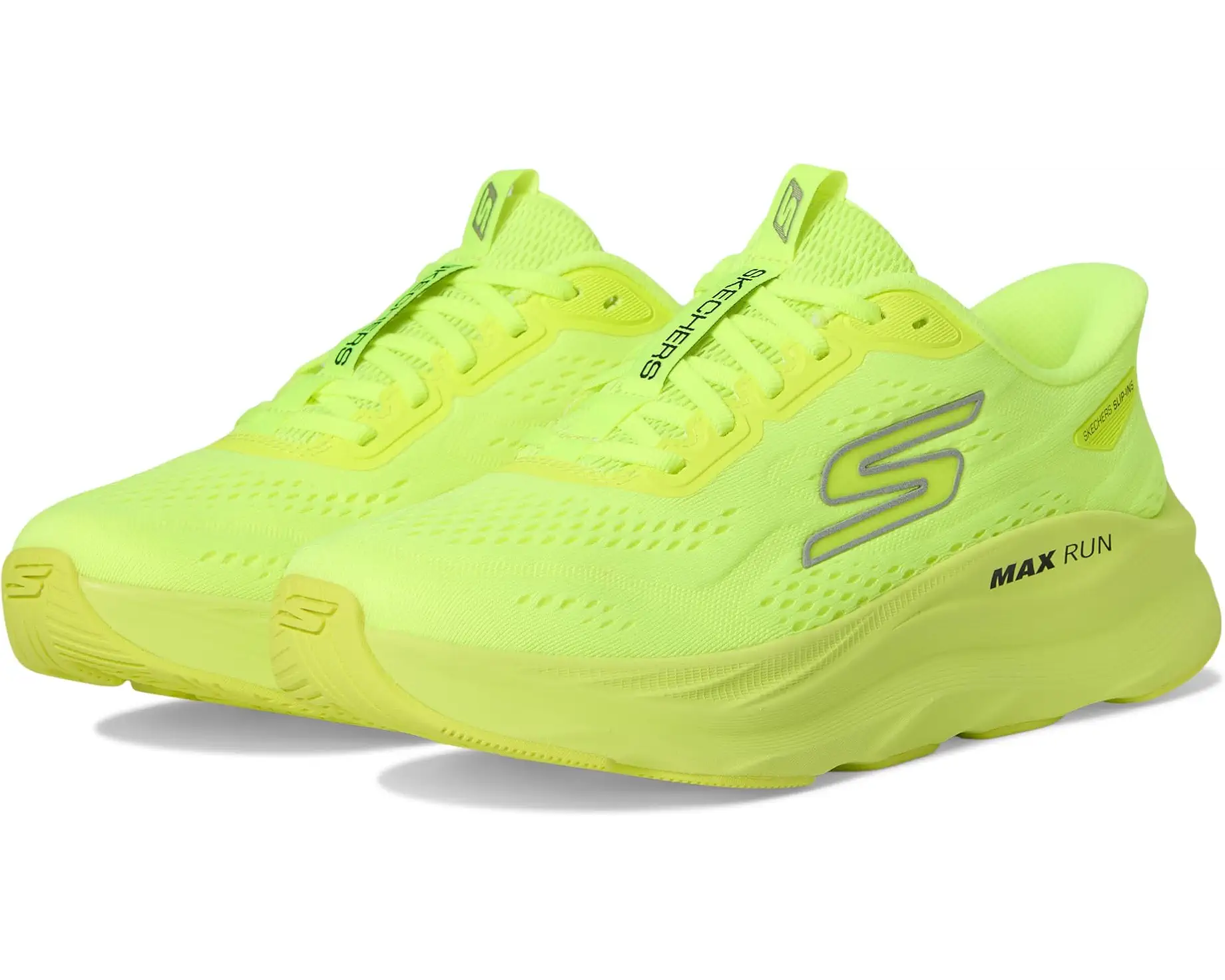 • Unleash effortless performance styling the SKECHERS® Max Run Hands Free Slip-Ins. Designed for runners who crave next-level comfort without slowing down, these lace-up sneakers feature a breathable engineered knit upper and a soft fabric lining for an adaptive fit. Thanks to Skechers' exclusive Hands Free Slip-Ins® Heel Pillow™ design, stepping in has never been easier, no bending, no fuss. The Air-Cooled Goga Mat™ insole provides high-rebound cushioning, while Max Cushioning® and ULTRA LIGHT® midsole tech deliver plush support and lightweight response mile after mile. The Goodyear® rubber outsole ensures superior grip, traction, and durability on every surface.