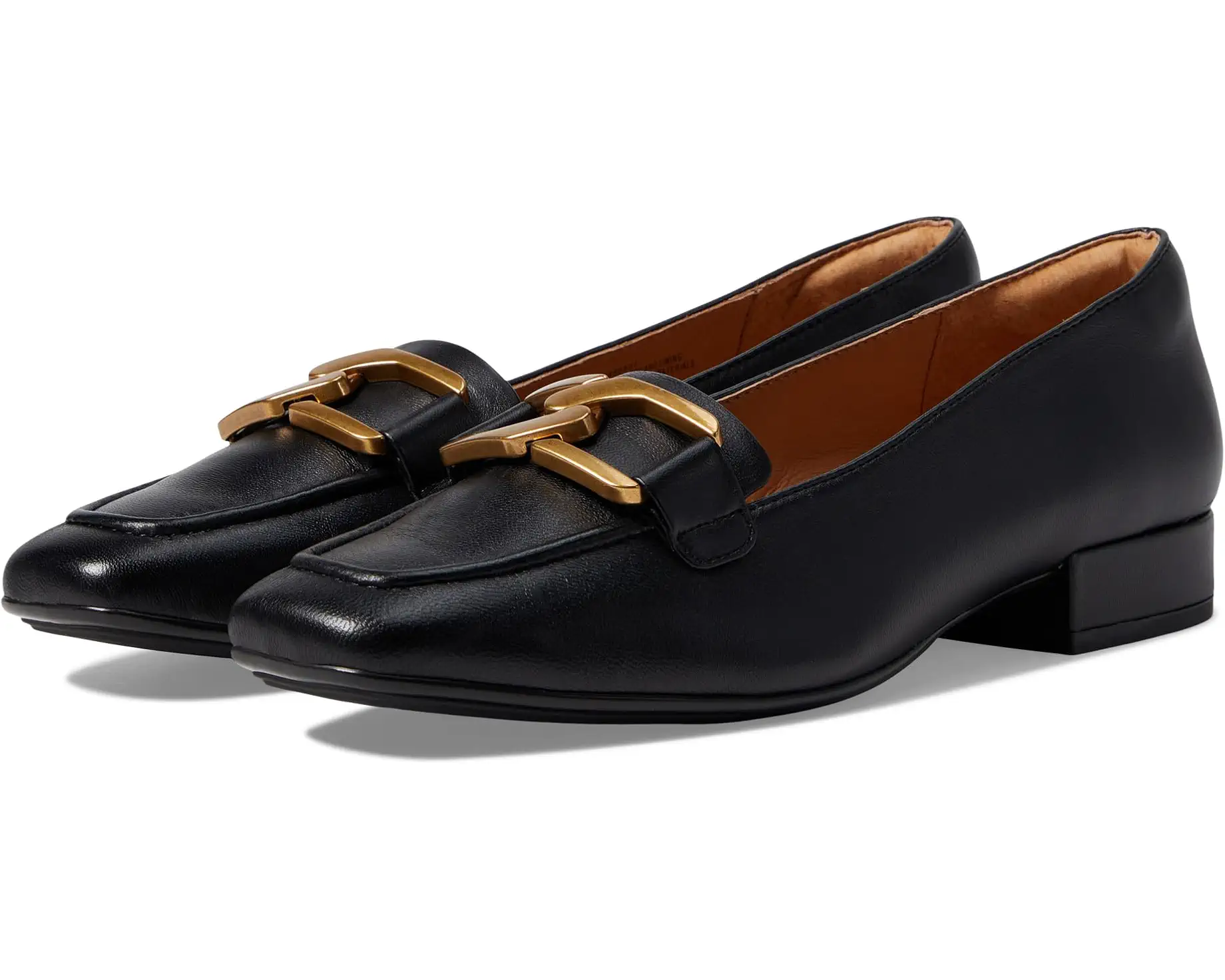 • Step in style by wearing the Sofft® Erica loafer. The slip-on style footwear has a square-toe design and a slight block heel for an effortless look. The tailored fit loafers have leather upper with a buckle accent that adds a statement to the loafers. The leather lining and microfiber insole ensures comfort.
