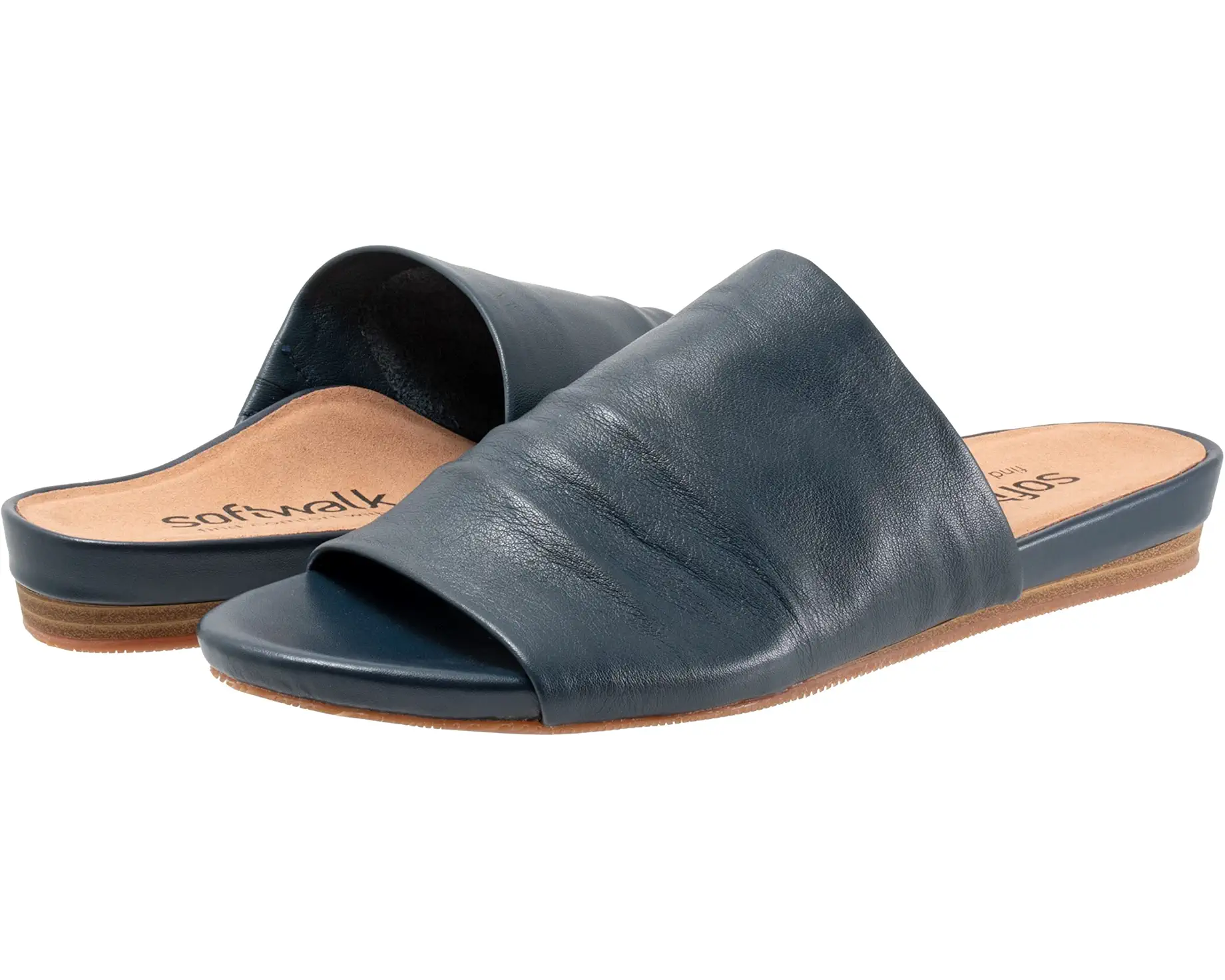 • Asymmetry and subtle ruched detailing adds an element of contemporary-chic to the Camano slide sandal. The Camano sandal offers a cushioned footbed with integrated arch support on a lightweight, flexible sole for maximum comfort.