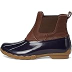 • The Sperry® Saltwater Chelsea boots combine two iconic styles to create a modern boot fit for colder and wetter weather. These boots feature a leather upper, with a rubber duck shell adding a preppy touch. The waterproof upper and thermal lining provide comfort and keep your feet warm and dry, no matter the weather, while a molded Wave-Siping™ rubber outsole offers traction in wet and dry conditions. They are made of a polyester lining and a removable polyester insole. The side gore panels ensure easy wear. These ankle-high boots are perfect to pair with your favorite pair of jeans and dress up for a coffee date or wear around the yard.