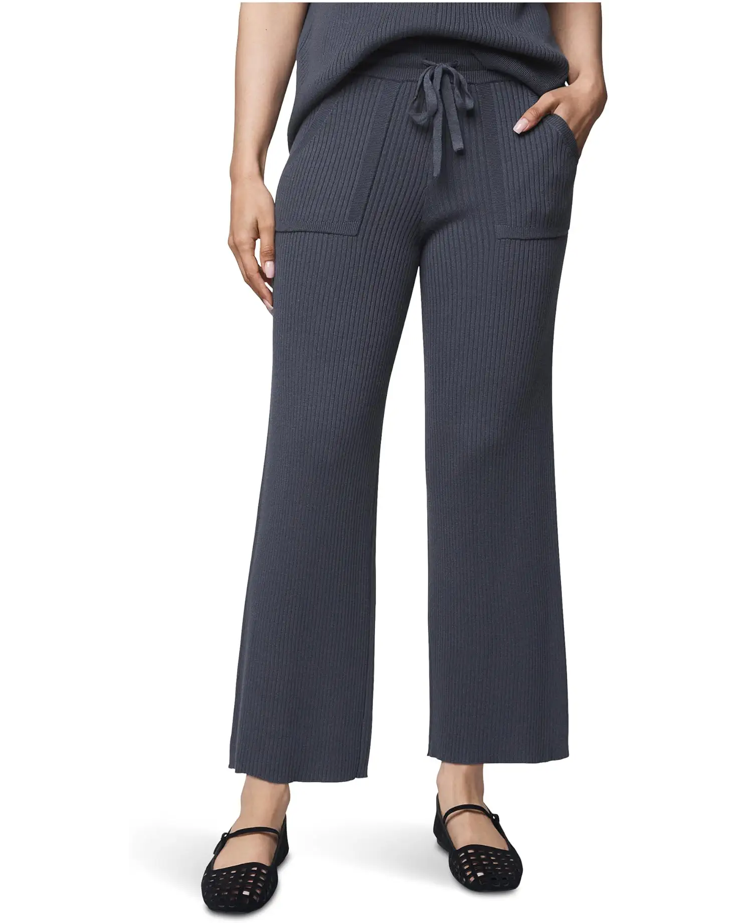 • Experience the perfect blend of fashion and functionality adorning Splendid® Georgie Rib Pants! The Georgie Cashblend Rib Pant features a mid-rise, wide-leg silhouette cropped at the ankle, adding an upscale look to your wardrobe. Enjoy the convenience of a ribbed drawstring waist and front patch pockets with ribbed trim. Crafted from our signature Cashblend, these pants offer a luxurious ribbed texture for ultimate comfort. Perfect for effortless chic, these pull-on pants combine style and ease, making them your go-to for any casual outing or relaxed day at home.