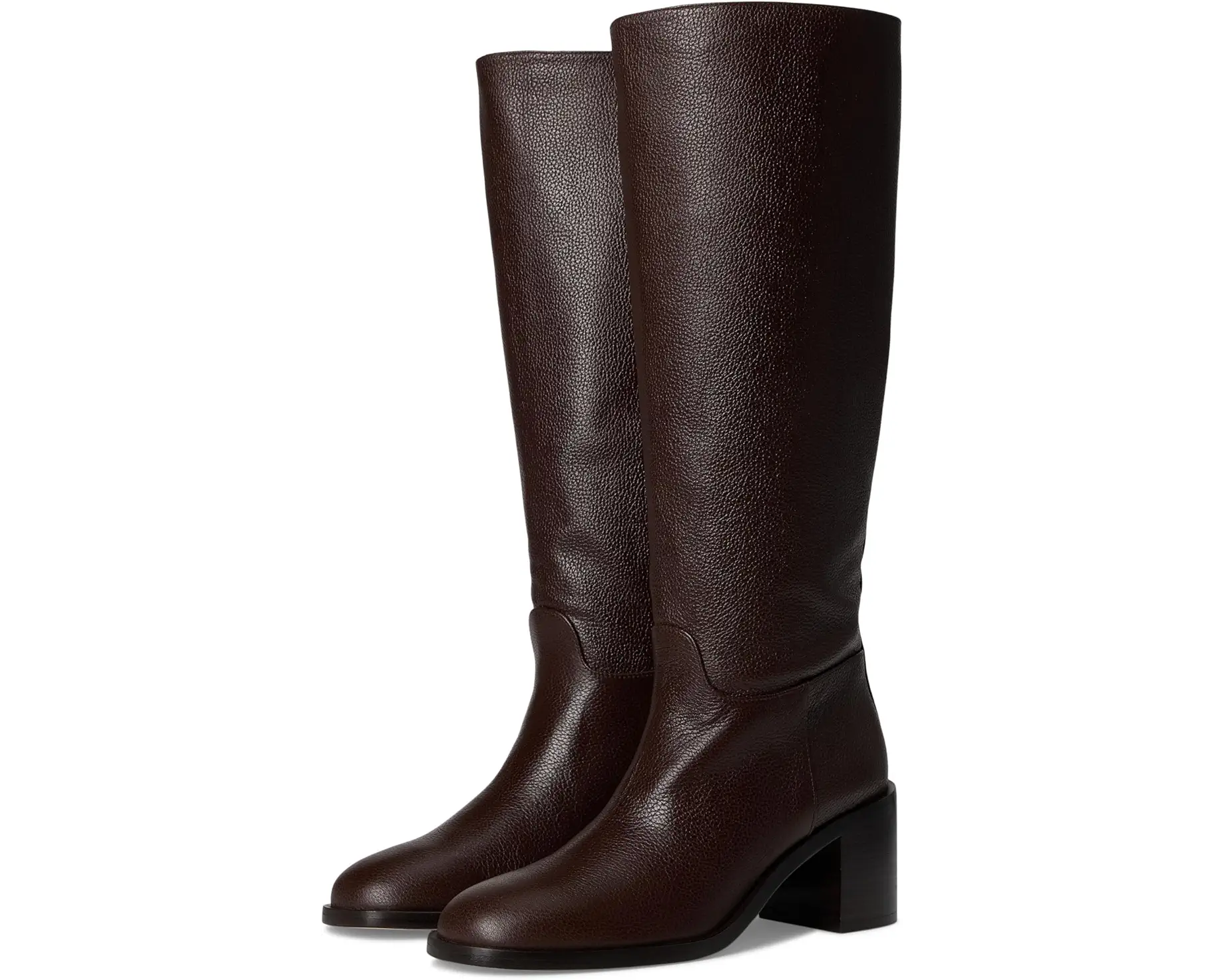 • Elegant in appeal and superior in quality, the Stuart Weitzman® Finn Boots are perfect for all-season wear. The knee-high boots come with a grainy leather upper, mestizo leather lining, and a leather insole. The block heel detail elevates the look and the side zipper closure allows easy on/off.