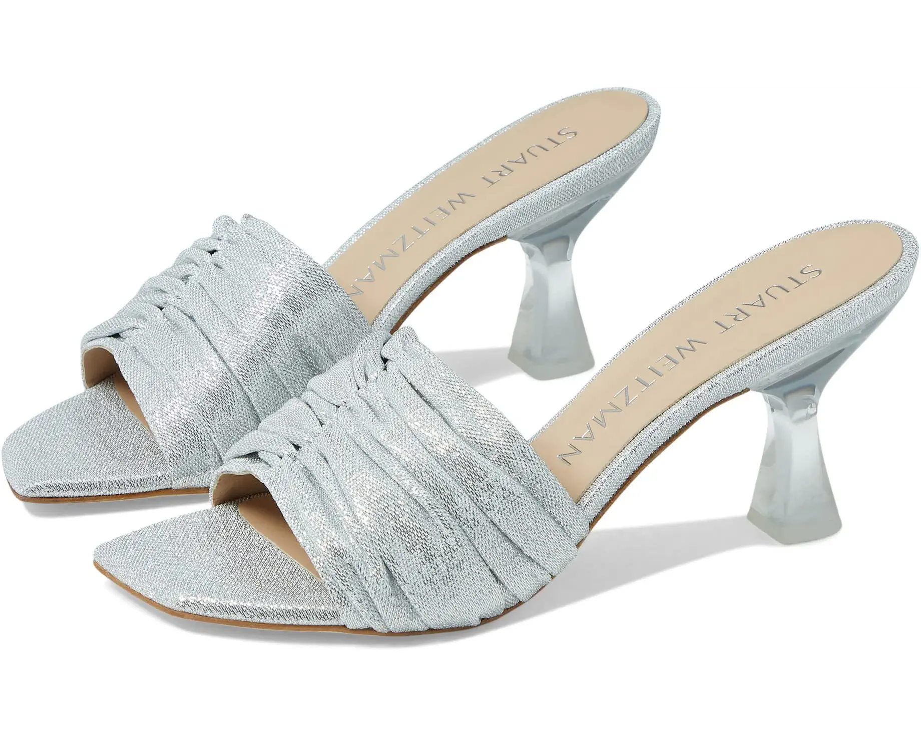 • Bring on a dazzling touch to your ensemble donning the sleek and chic Stuart Weitzman® Ruche 75 Slide Heels.