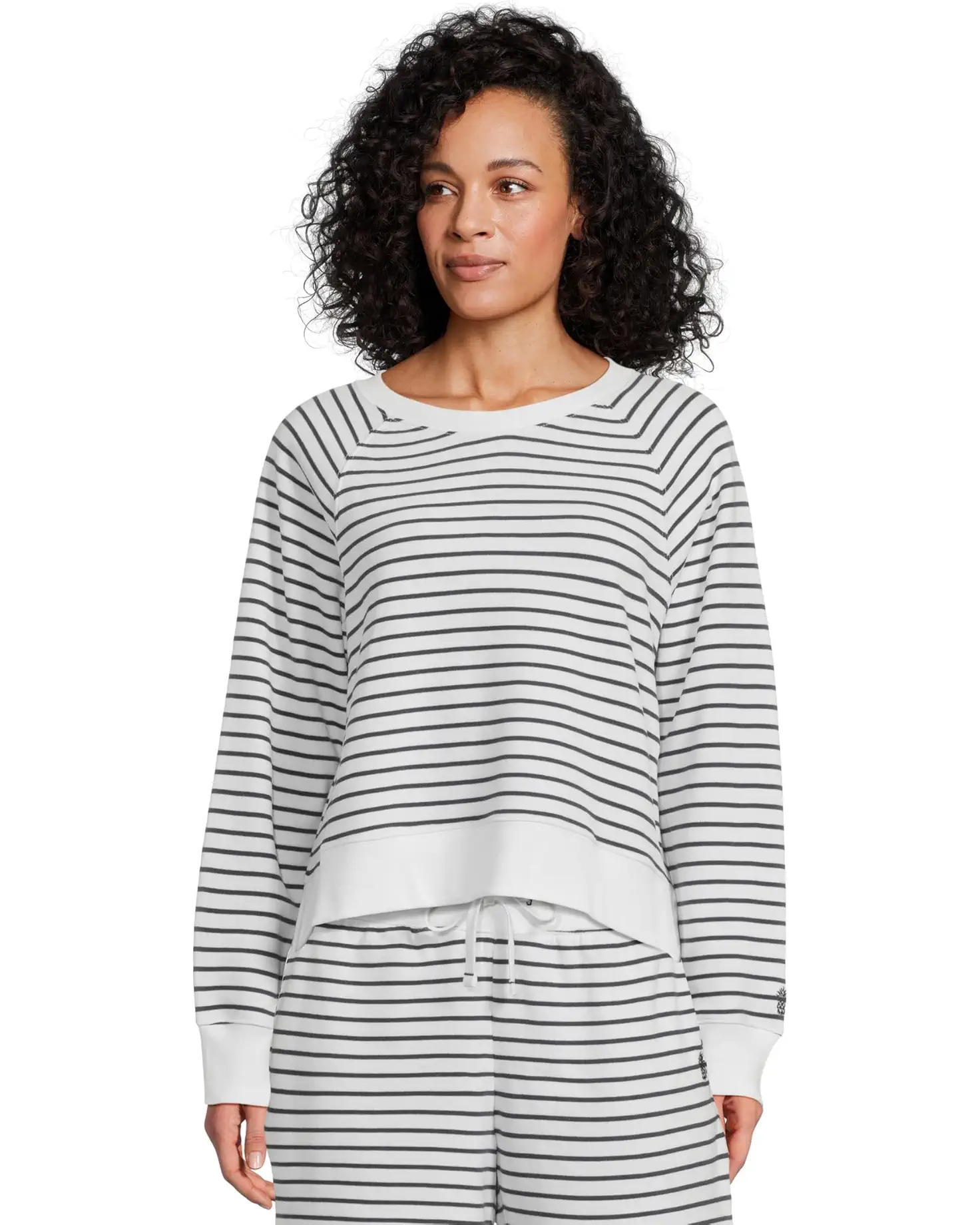 - Crew neckline and long sleeves.