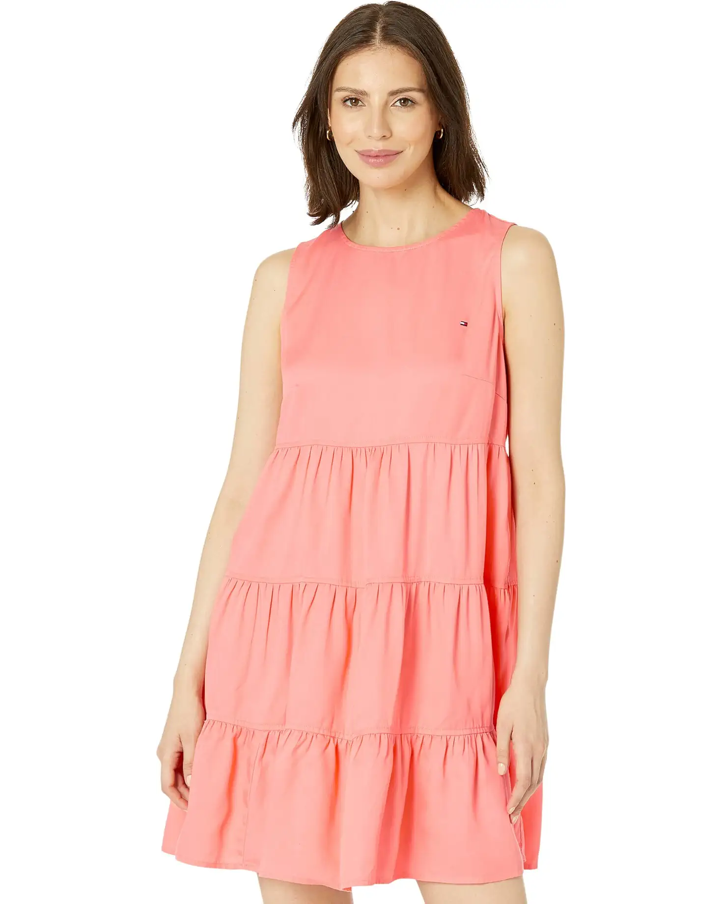 - A vibrant hue adorns the look of the Tommy Hilfiger® Sleeveless Tencel Popover Tier Dress.