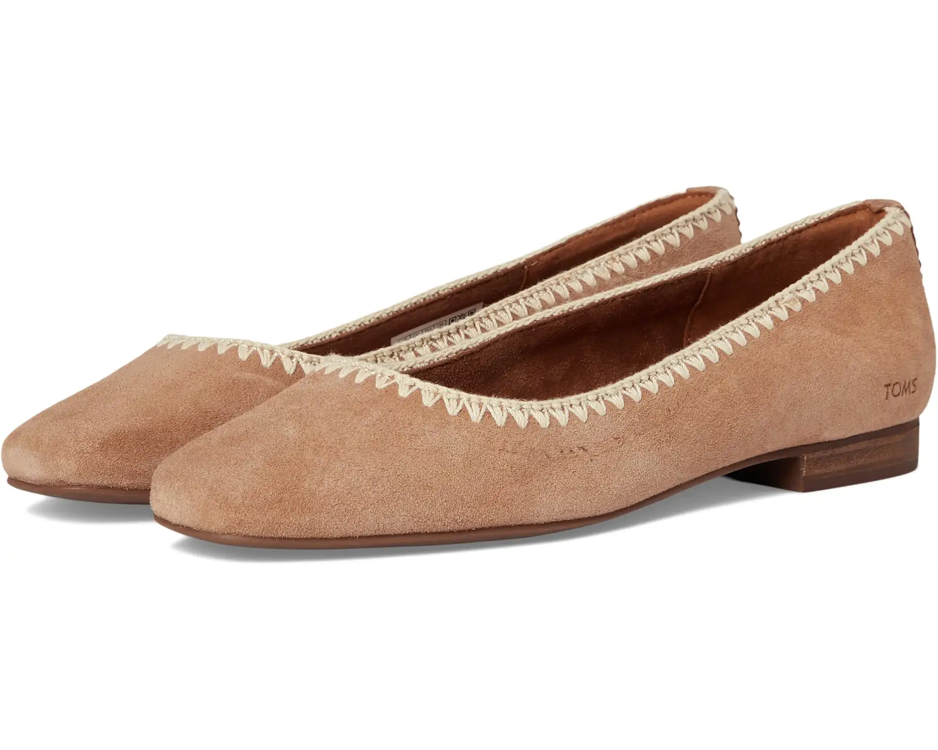 • Showcase your glossy look in a charming way donning the TOMS® Briella. This gleaming flats feature OrthoLite Eco® LT-Hybrid™ insole for enhanced comfort, square toe design, and pinked edge heel counter detailing.
