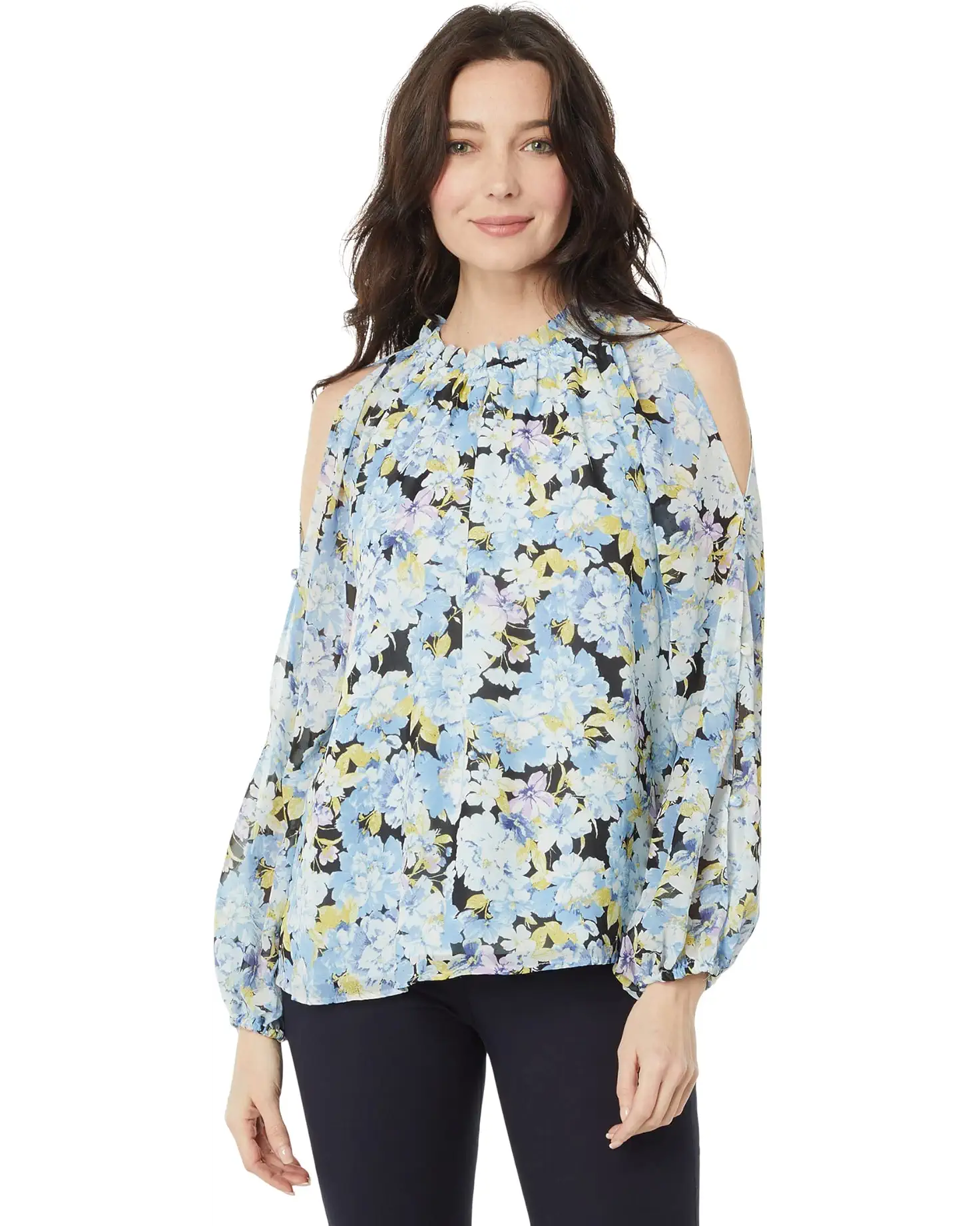 Cold-Shoulder Long Sleeve Blouse w/ Neck