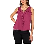 - Show off a cute and casual look at the next day out wearing Vince Camuto® Sleeveless Ruffle V-neck Blouse. The blouse features a V-neckline with tie-up closure, a sleeveless design, ruffle details, and a straight hem.
