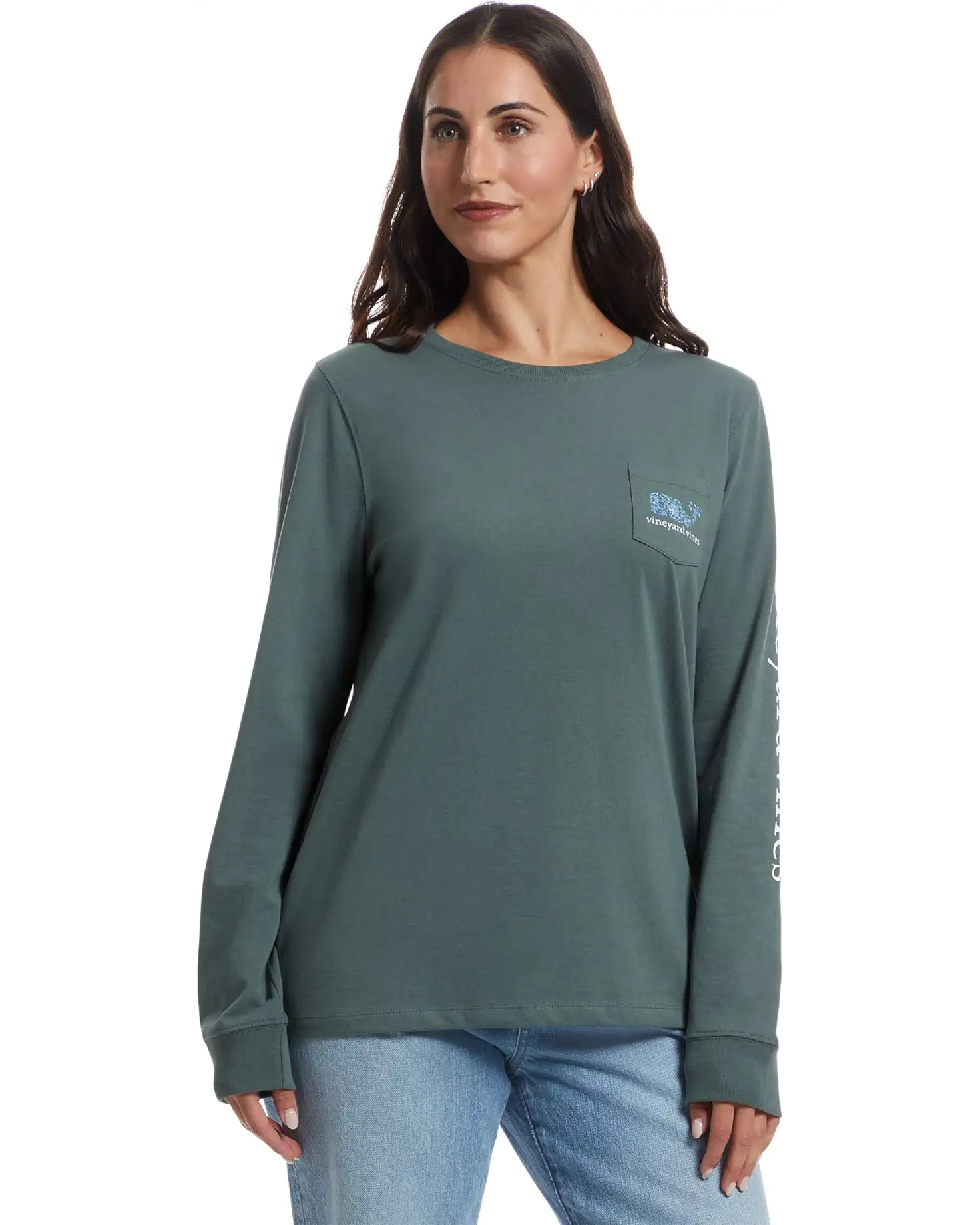 • The vineyard vines® Edie Floral Dynamic Whale Fill Long-sleeve Pocket Tee features ribbed crew neckline and cuffs for a classic fit and comfort. The standout detail is the brand's iconic whale logo at the chest pocket and back.