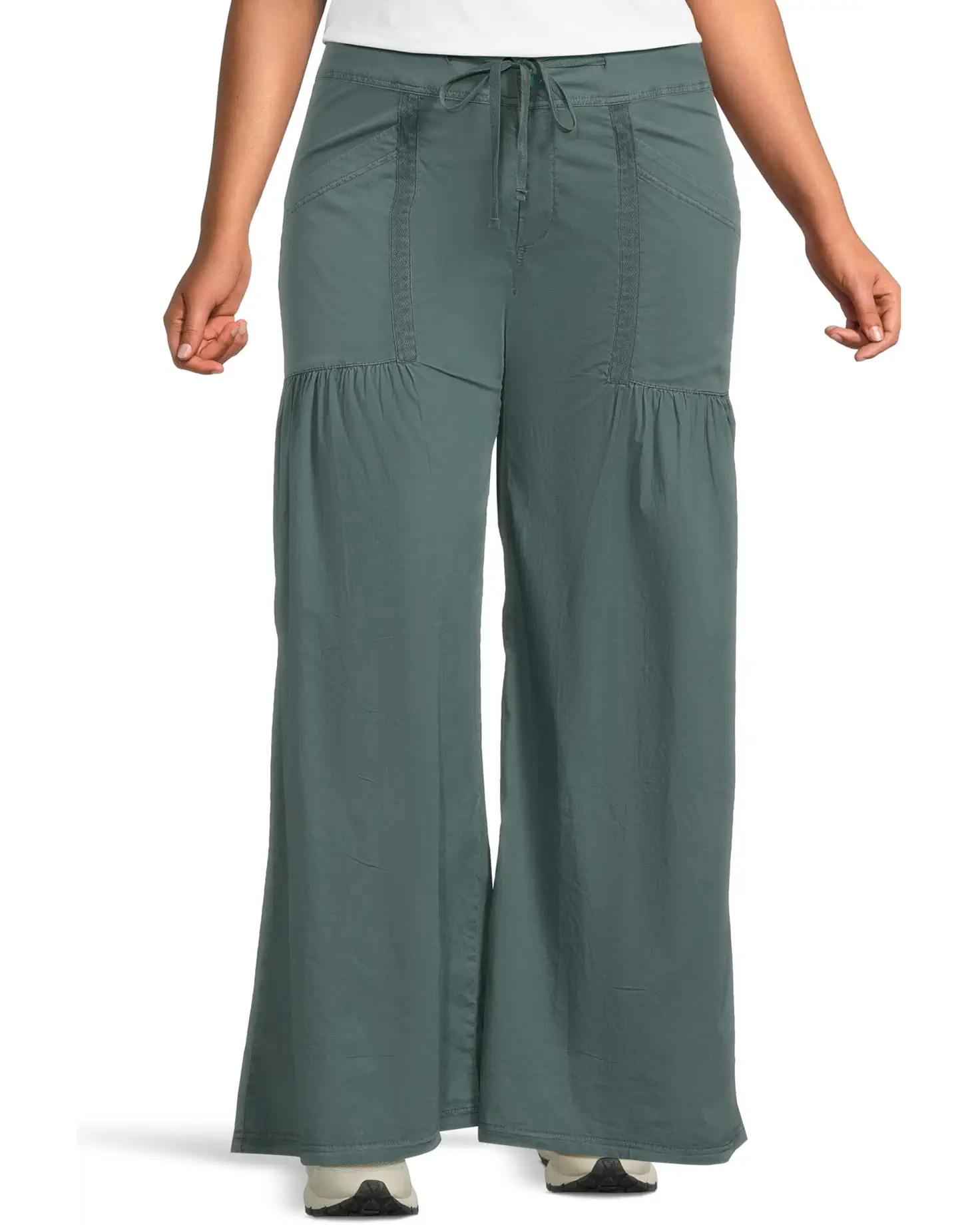 • Adorn dramatic yet casual style when you adorn these XCVI™ Willow Wide-Leg Pants with a stretch poplin fabrication and high rise silhouette. The pull-on style pants feature a drawstring waistband, a zipper fly with snap-button closure, two front pork chop, two back patch pockets, and a slanted patch pocket beneath the left back pocket. Shirring below the front pockets and on the back knees delivers unique texture.